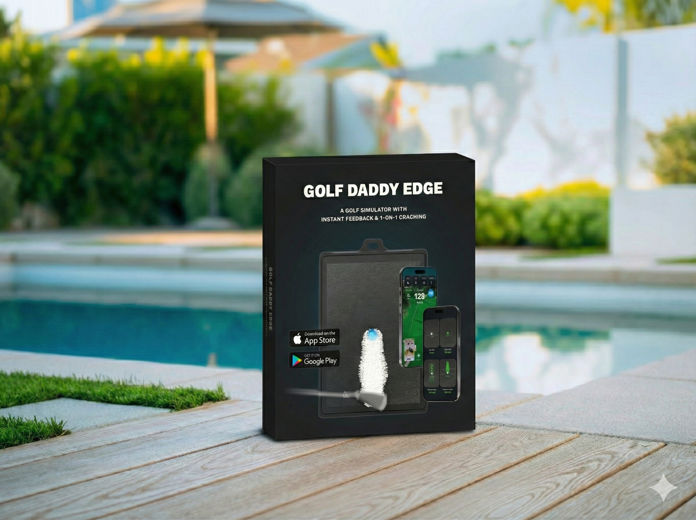 Golf Daddyシミュレーターがあれば、わずか数分の準備でゴルフ場の雰囲気を自宅に作り出せます。効率的なプレーシステムで「90日で90切り達成」を目指せる様に設計されています。
